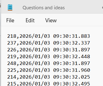 - Go to your backup folder and open the RaceDay Scoring export csv you created and view for bib number, ISODATE line items if you need to confirm reads are being saved.