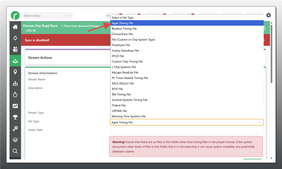 - Under File Type, select “Agee Timing File”